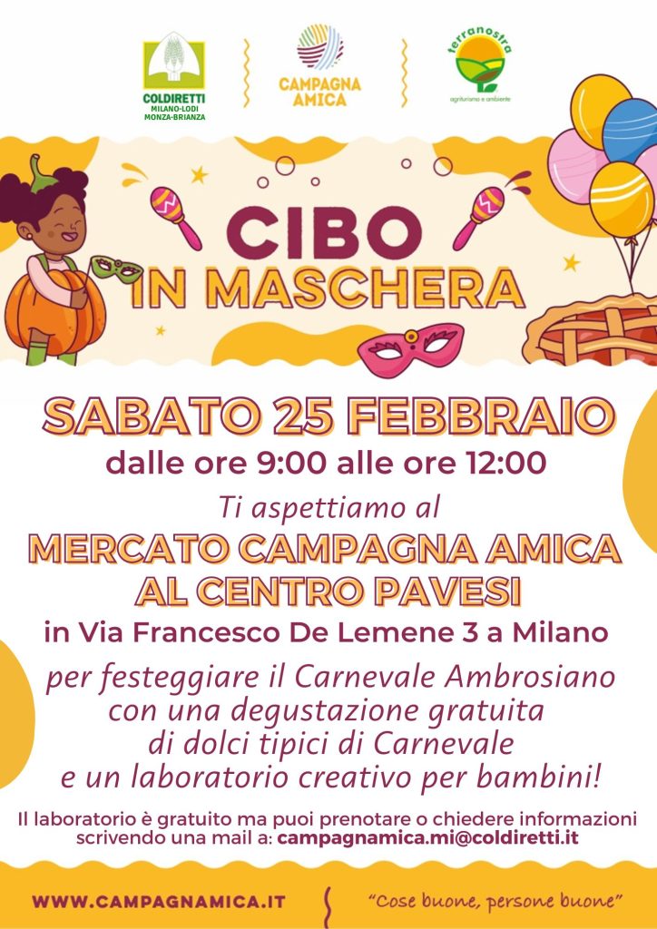 Una degustazione di dolci tipici e un laboratorio manuale per aiutare i più piccoli a creare maschere originali. Così il mercato agricolo di Campagna Amica del Centro Pavesi FIPAV di Milano festeggerà il Carnevale Ambrosiano.