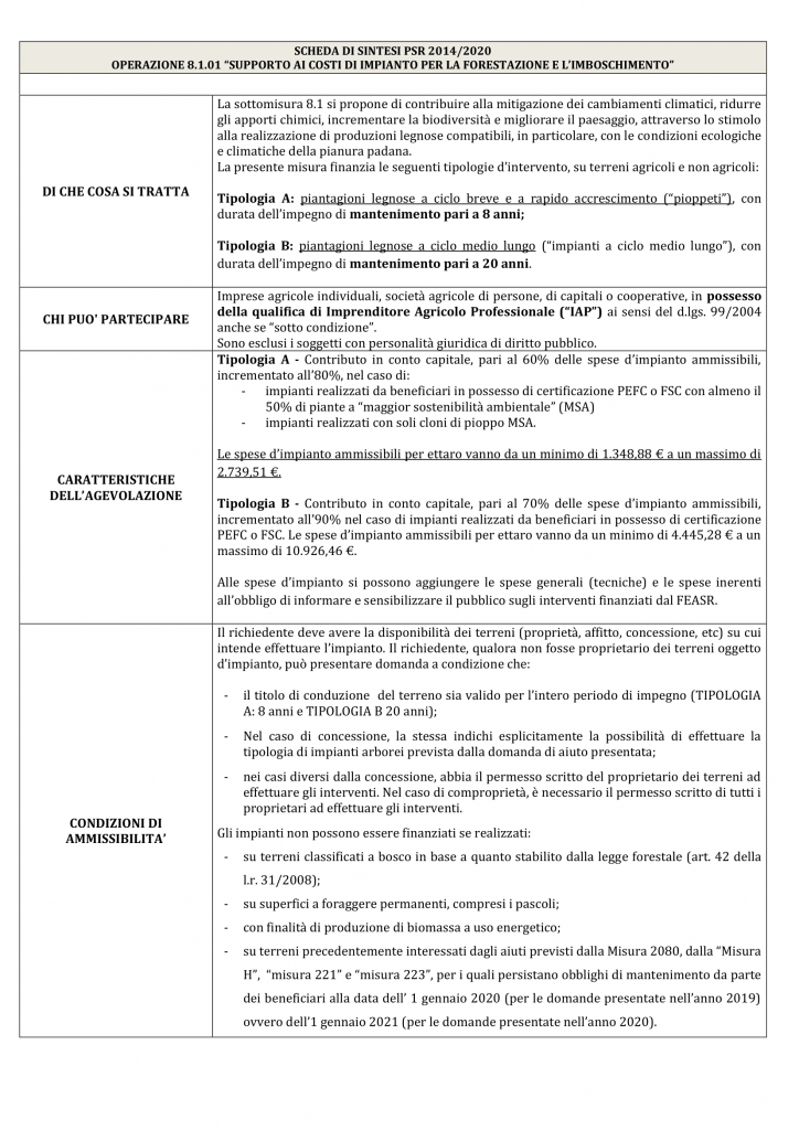 Clicca qui per scaricare la scheda integrale pdf dell'Operazione 8.1.01